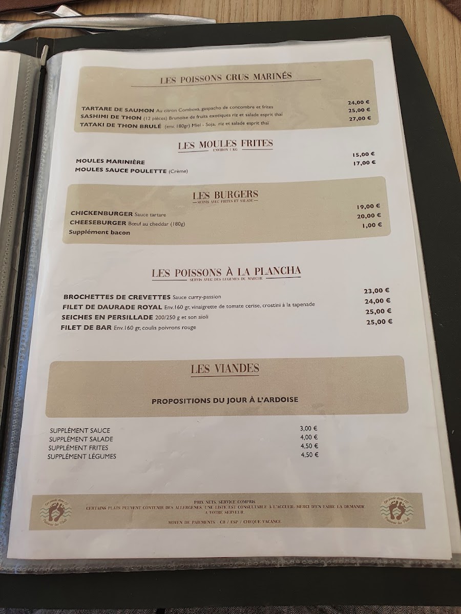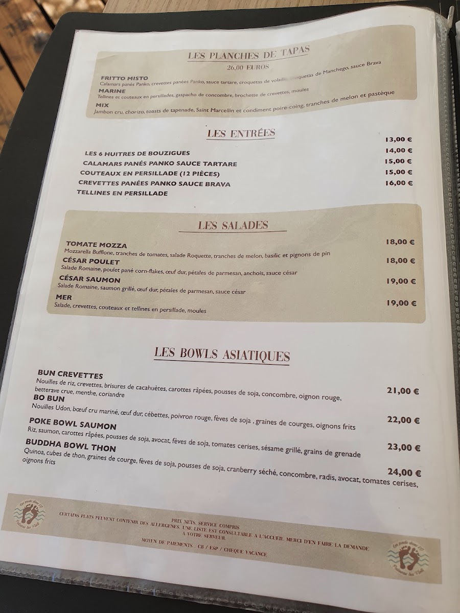 If you're looking for an unforgettable dining experience, the Les Pieds Dans L'ô Menu is a must-try. Located in the heart of Marseillan, at 69 Chem. du Payrollet, this charming spot offers a blend of fresh, locally sourced ingredients and innovative flavors. Every dish on the menu is carefully crafted, from the light appetizers to the satisfying mains, ensuring there’s something to please every palate. The flavors are bold yet balanced, and the menu changes with the seasons, offering a variety of options that reflect the region's rich culinary heritage. Whether you're in the mood for a fresh seafood platter, a hearty steak, or a vegetarian delight, you're in for a treat. The attention to detail is evident in every bite, and the atmosphere is casual yet inviting, making it the perfect place to enjoy a leisurely meal with friends or family.